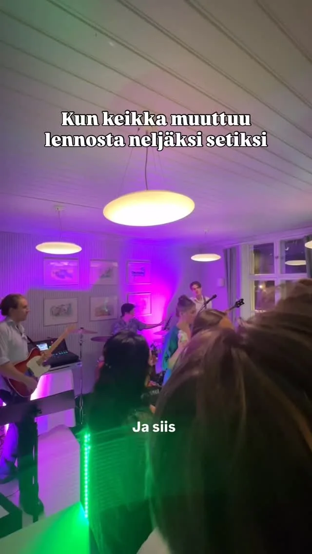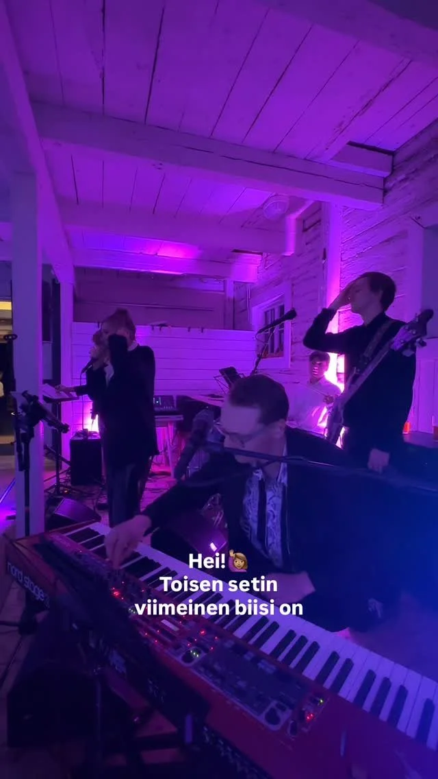 Kaikki käytännön järjestelyt ja kommunikointi bändin kanssa oli erittäin sujuvaa ja selkeää. Saimme pitkälti valita soittolistan ja bändin meitä varten opettelemat kappaleet meni mahtavasti.